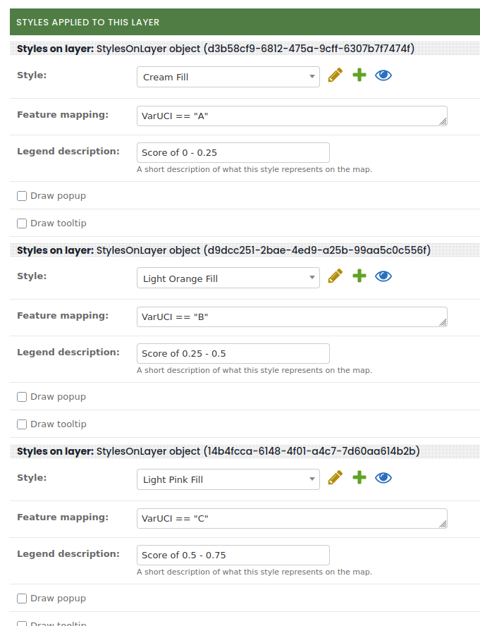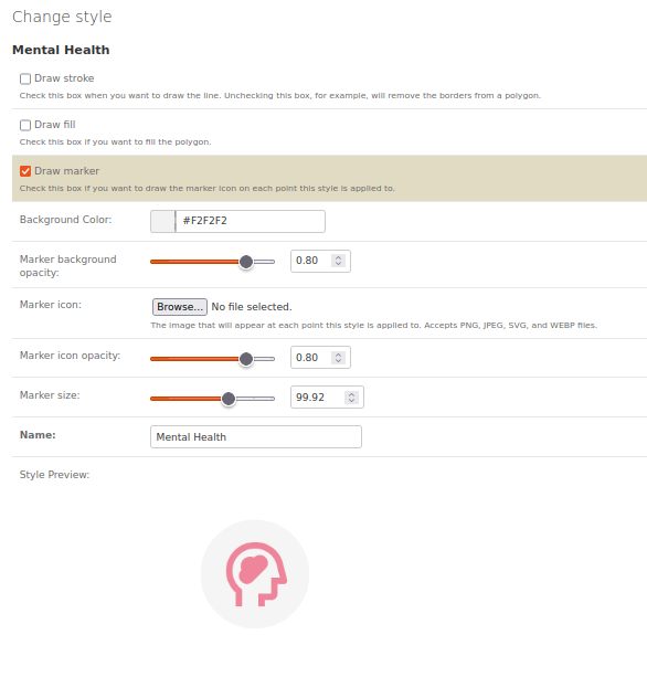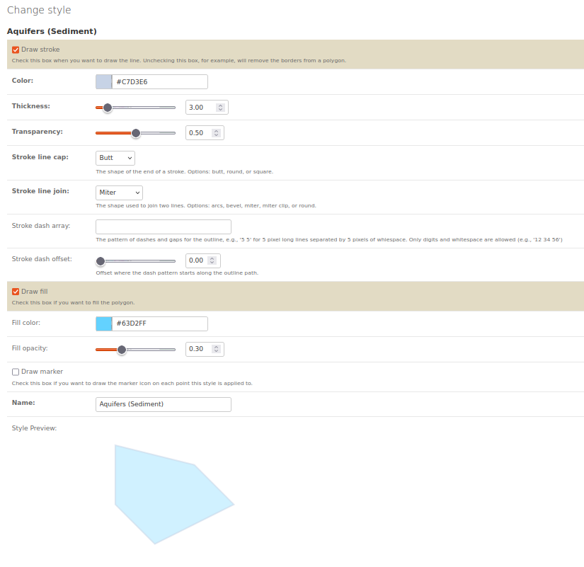 - Adding, editing, and deleting content on the website, including editing map icons for point data, and the color, thickness, and opacity of lines and fill for polygon data: